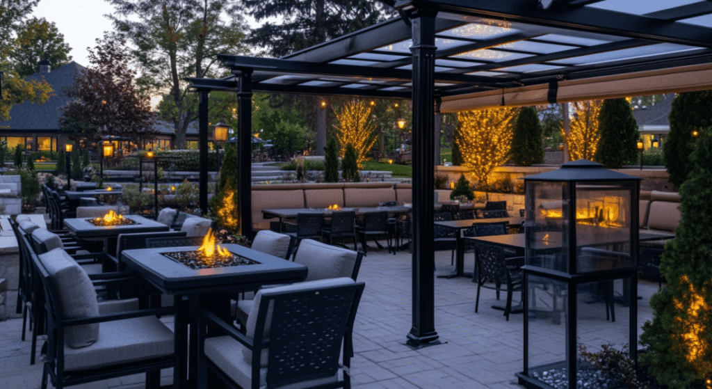 - Heating Solutions: Embrace outdoor heaters or fire pits for colder months to keep patrons comfortable and extend patio dining well into the fall or winter.