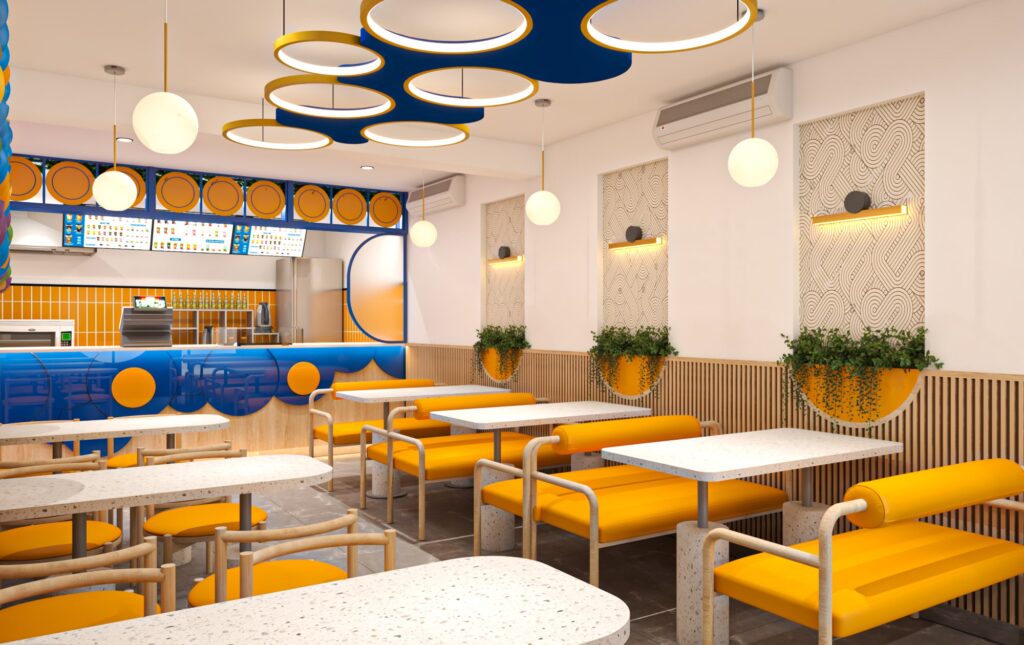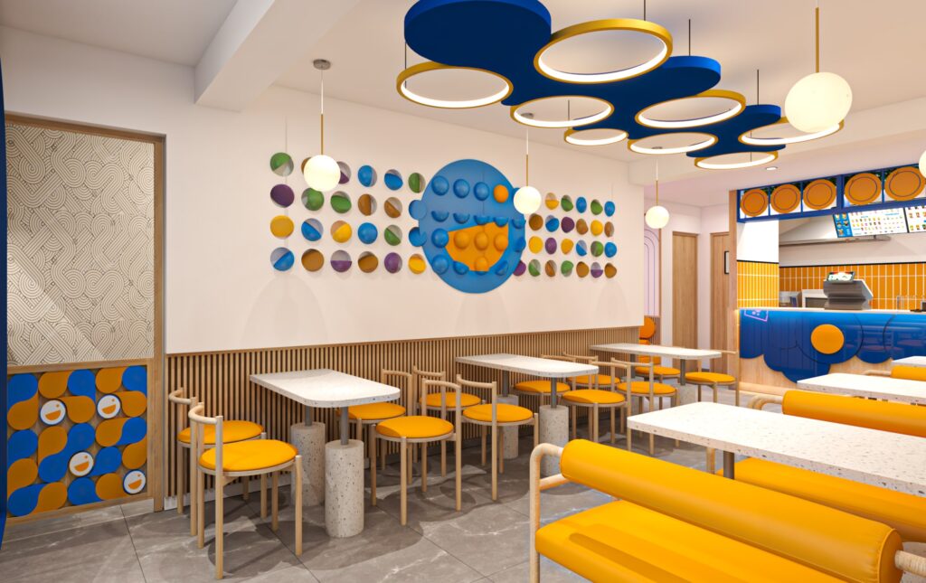 A bold mix of blue and yellow, inspired by movement and play, gives Kongsi a look that’s young and ownable.