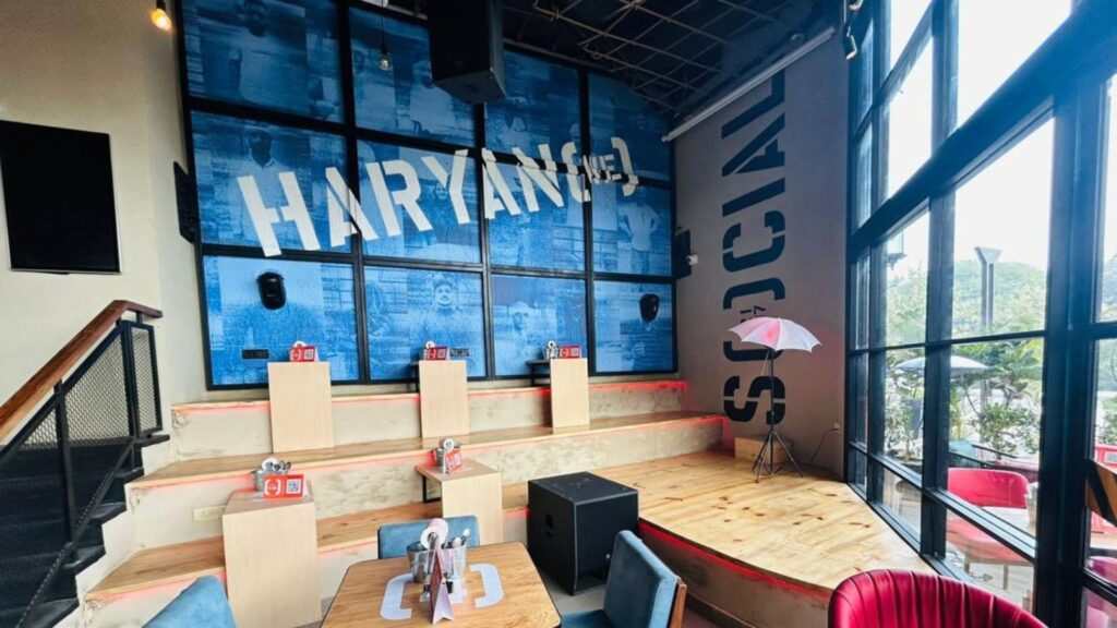 - Narrate a Local Story or History Through Design: Every location has its own unique history or cultural significance—why not weave that story into your restaurant’s design? This not only creates a deeper emotional connection with your audience but also gives them a reason to remember and talk about your space. For example, in the design of Bata Chowk Social in Faridabad we integrated foundry which not only celebrates the locality’s essence but also stands out as a destination with a story. At Dominos, the movable pivot graphics can be changed according to the festivals is another example. Also at Pizza Express, Vasant Kunj, the blue pottery of the area has been localised on the walls of the space.