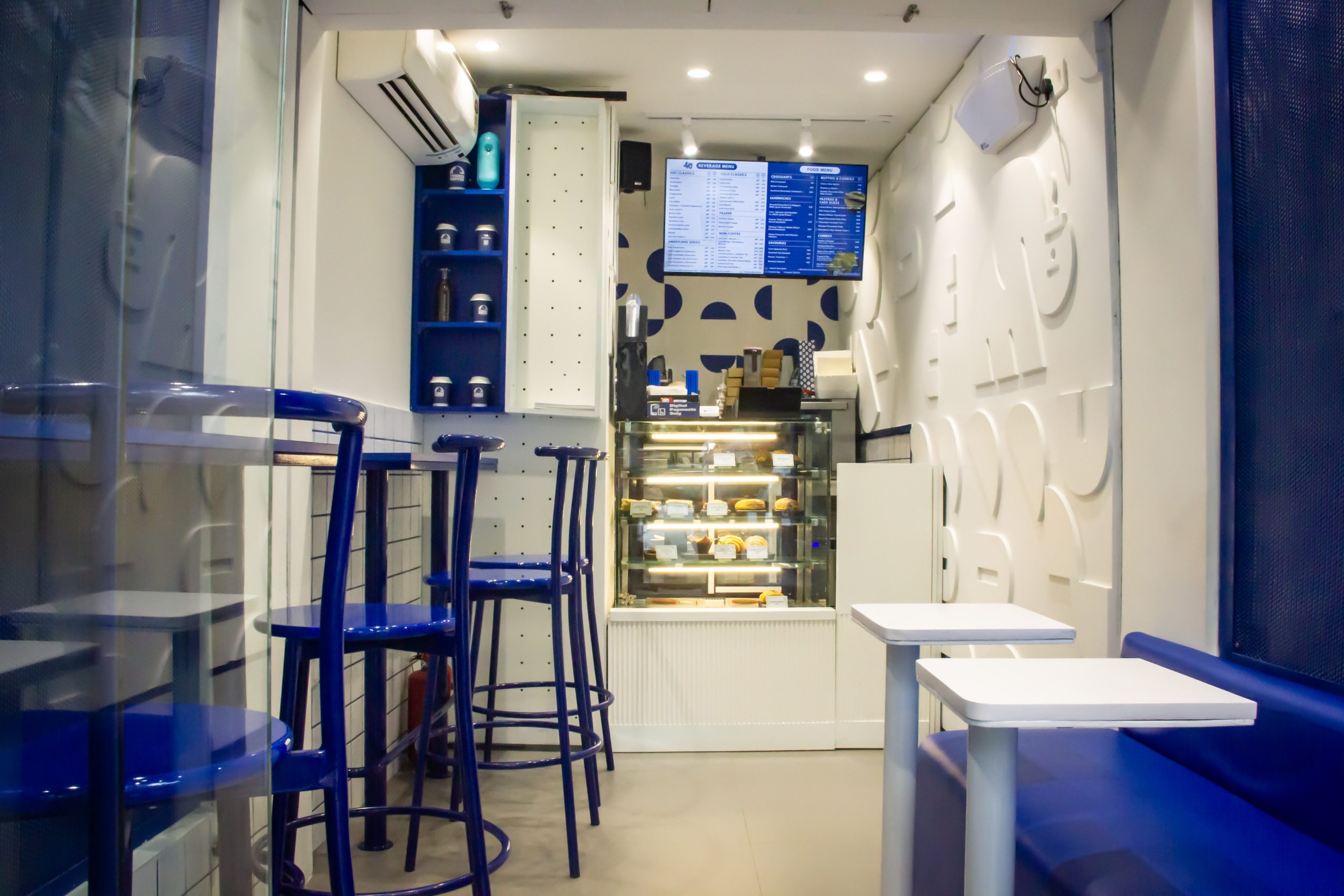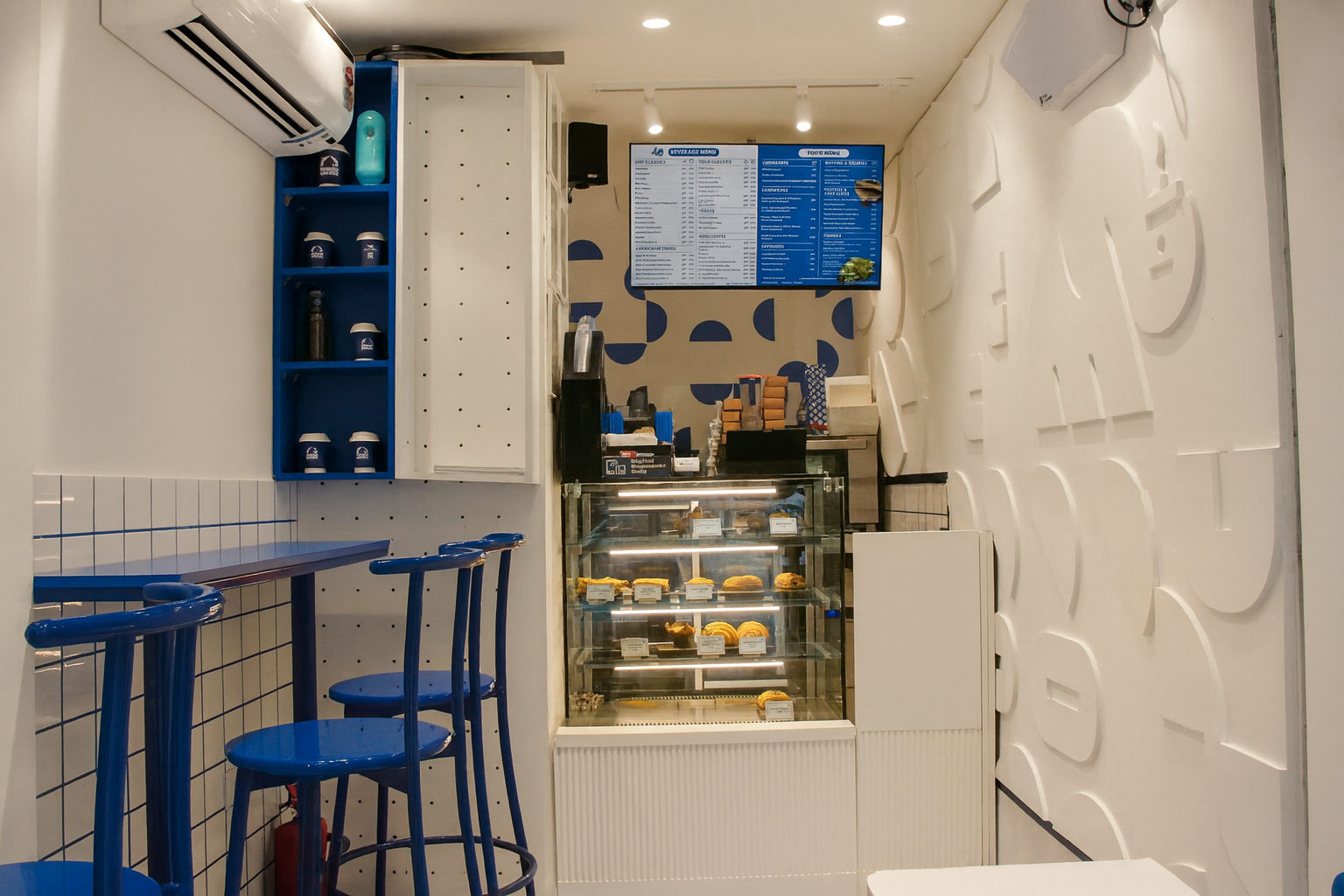 This café interior design brings a bold, minimalist rhythm to the grab-and-go experience — instantly catching eyes on any street.