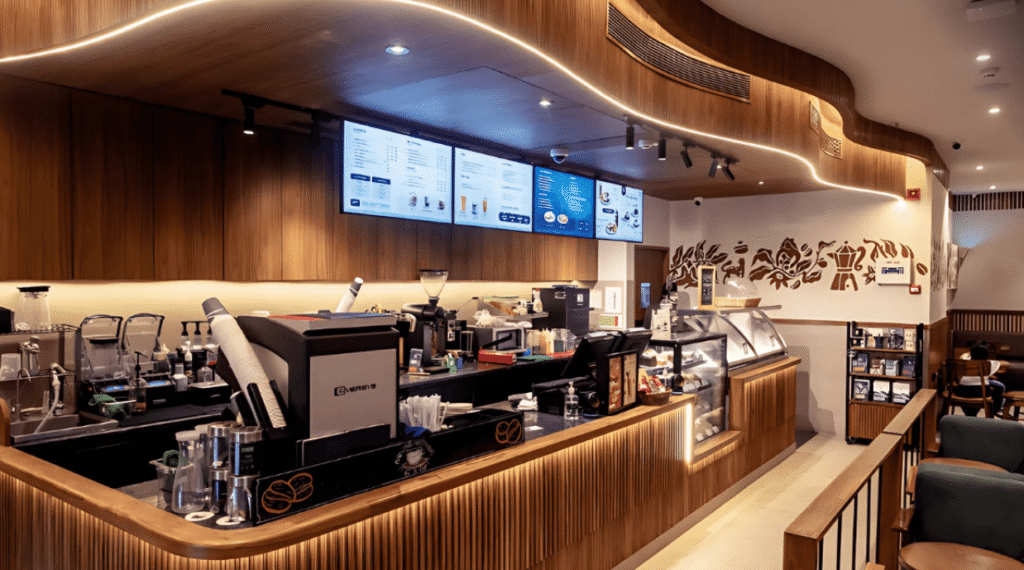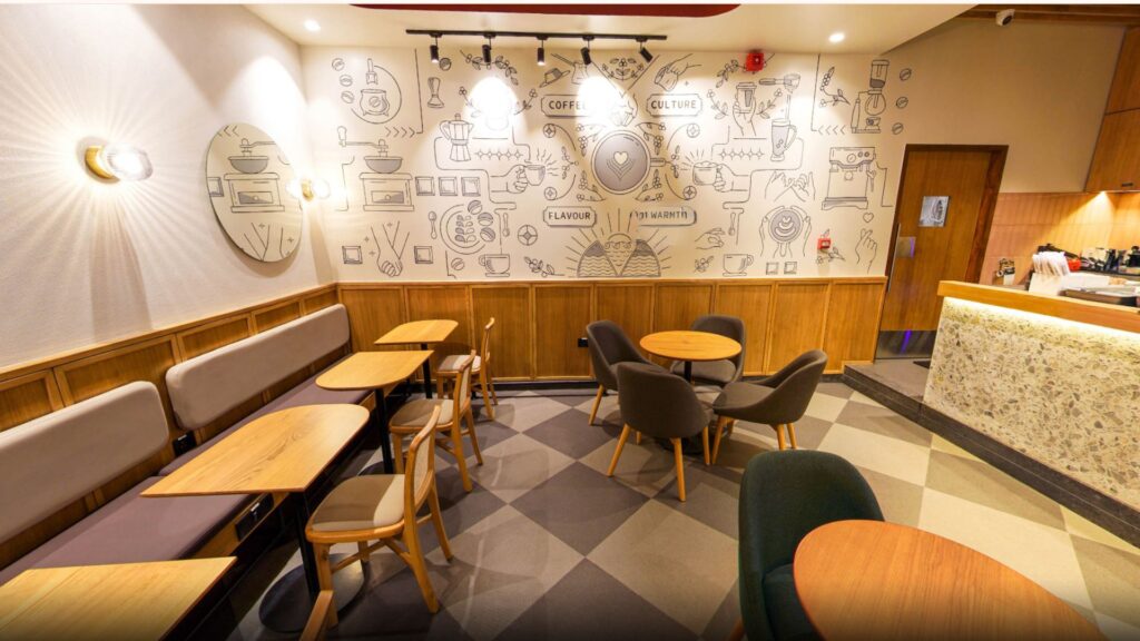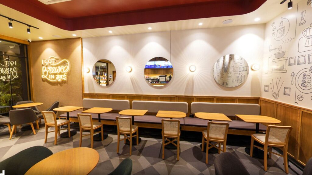 The signature arch frames the experience—inviting, calm, and familiar. With textured walls, cozy lights, and thoughtful finishes, it’s not just a café—it’s your daily escape